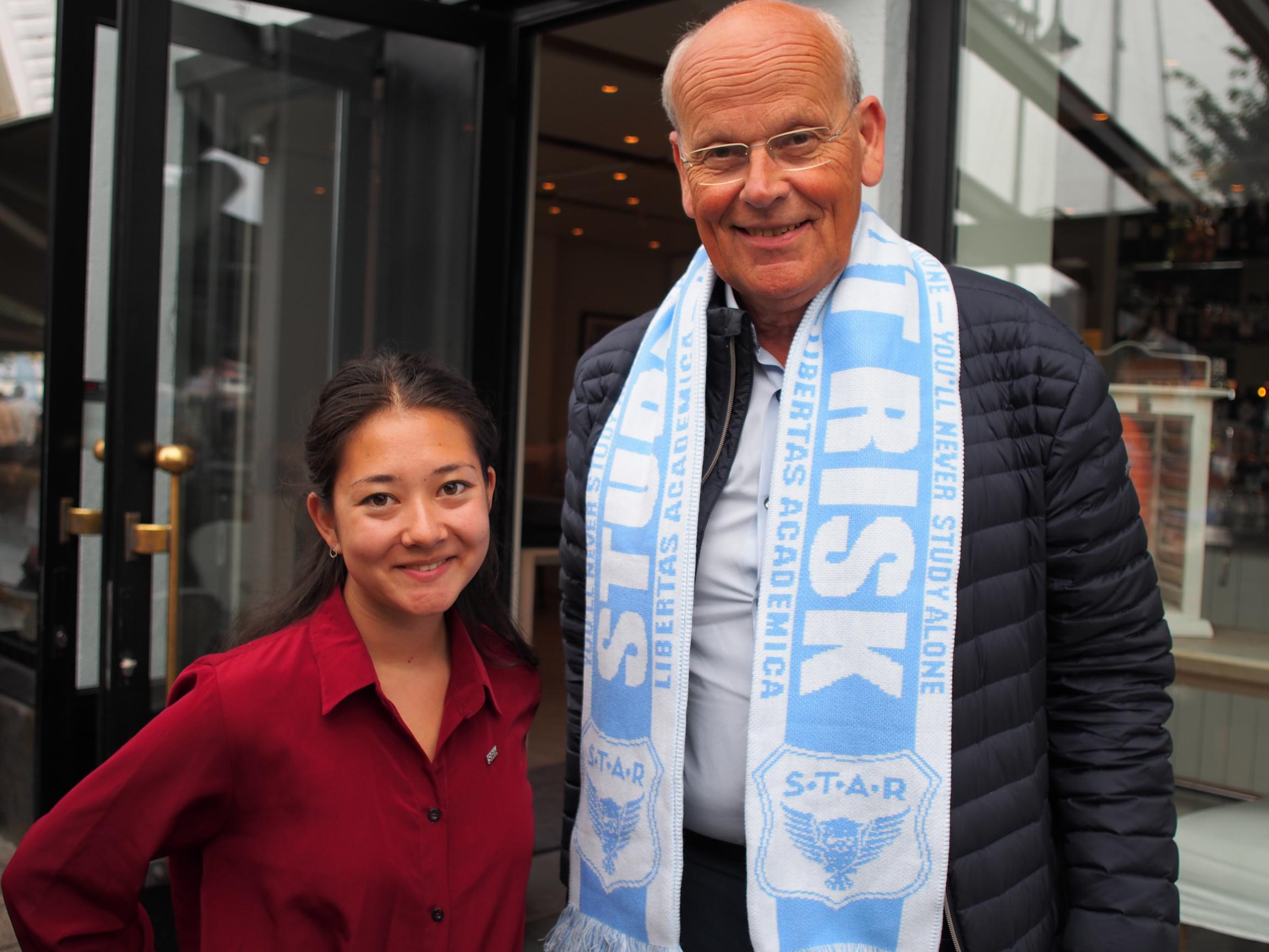Beathe takker for samtalen og gir Michael et Students at Risk-skjerf i gave. Hans respons er at han tror dette vil falle i smak hos sønnene, som nemlig er frelste fotball-fans til et lag med lignende farger.